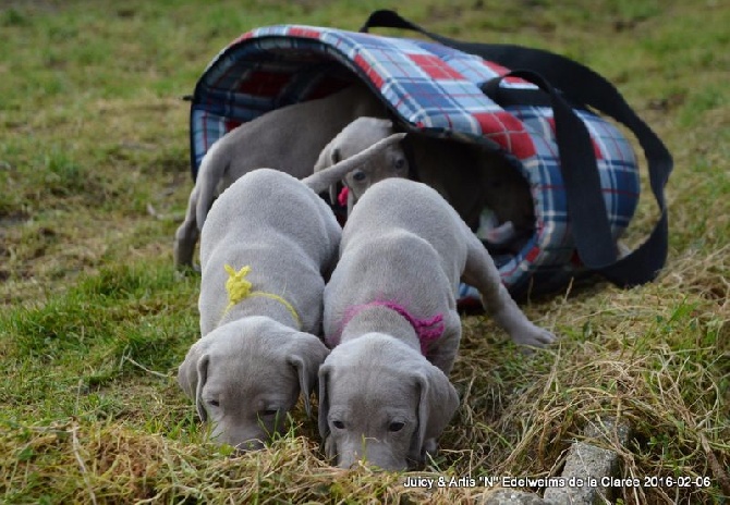 avec un peu de retard... news des chiots à 3.5 semaines: il fait 7 degrés et le temps est sec, pas d'hésitation, on tente une 1ère sortie des chiots de Juicy & Arti...